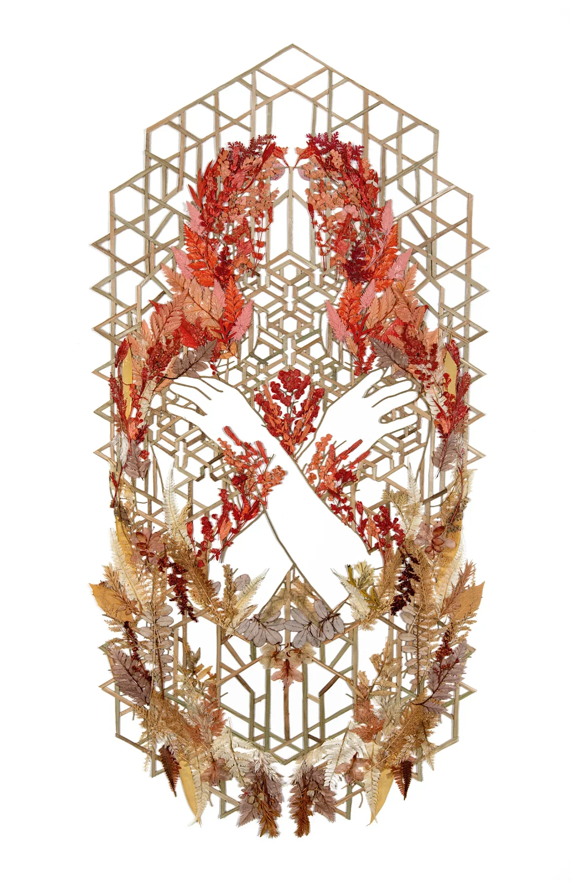 Pressed plants, acrylic paint, and paper, 24 x 40 inches